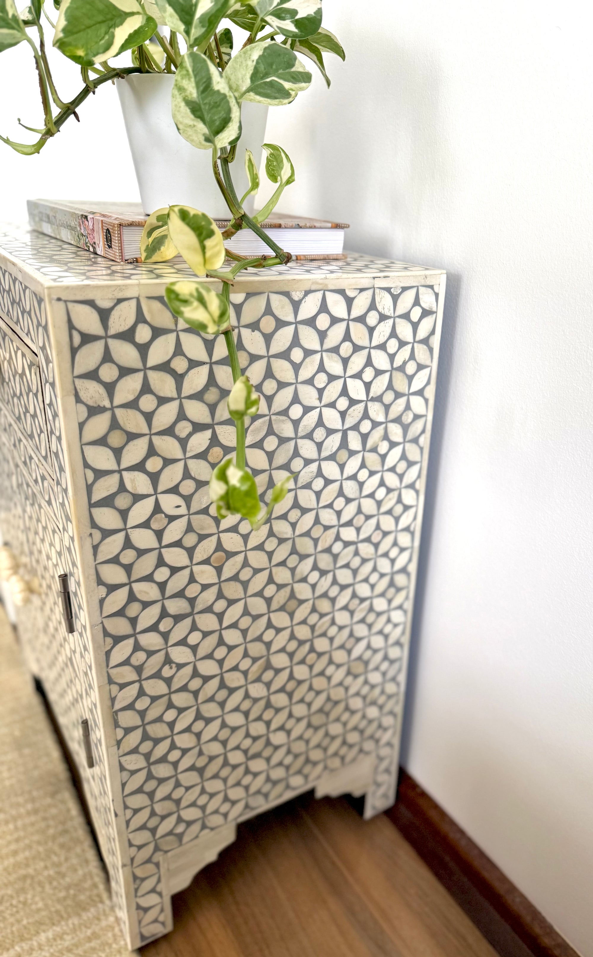 Bone Inlay 1 Drawer, 2 Doors Bedside Table - Grey Geometric