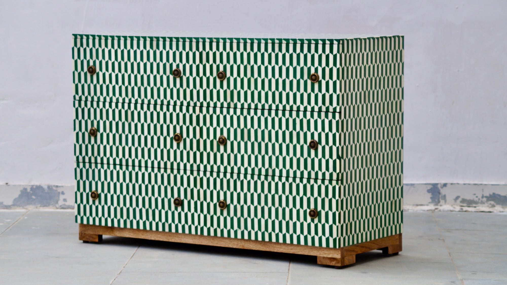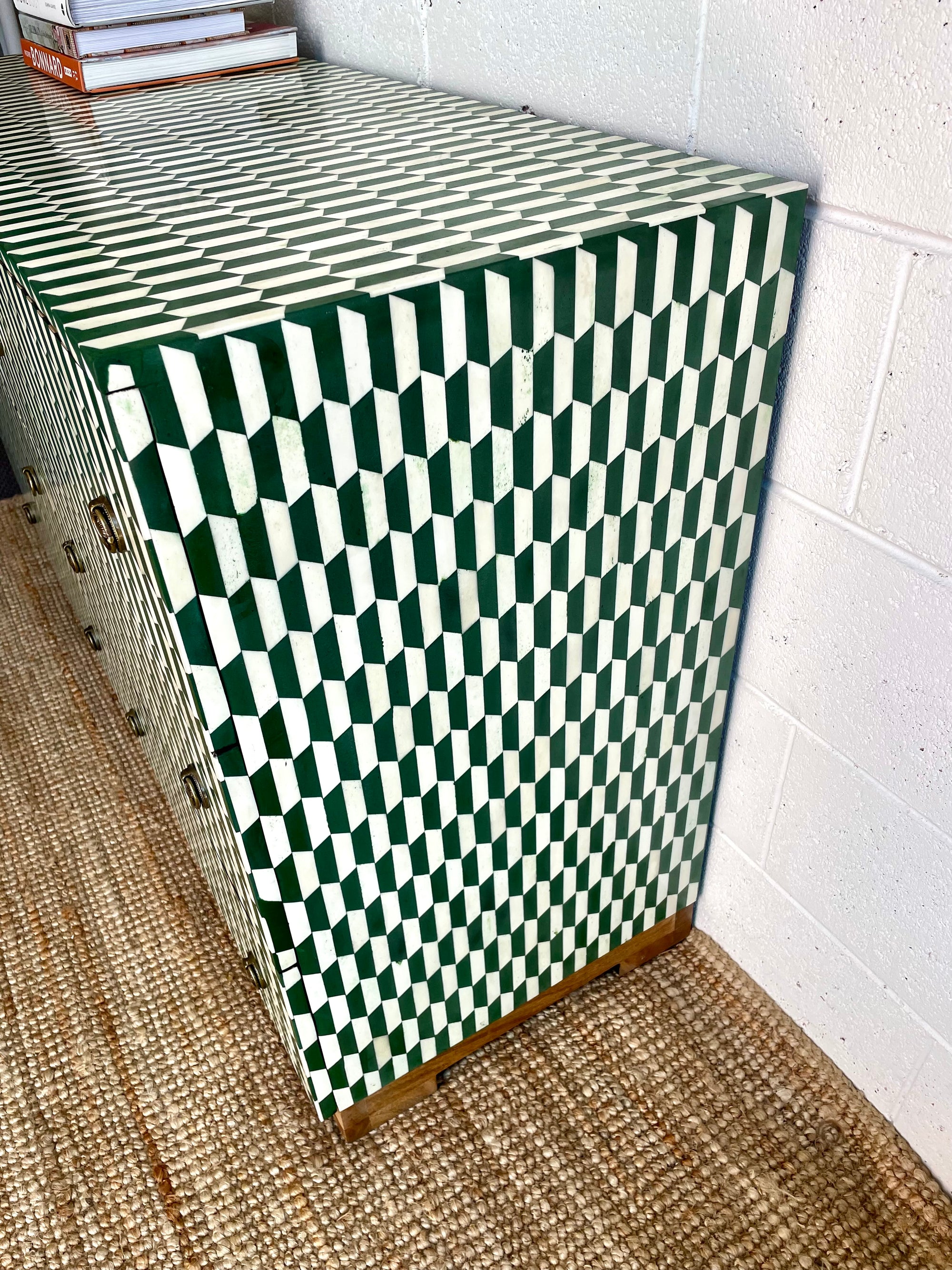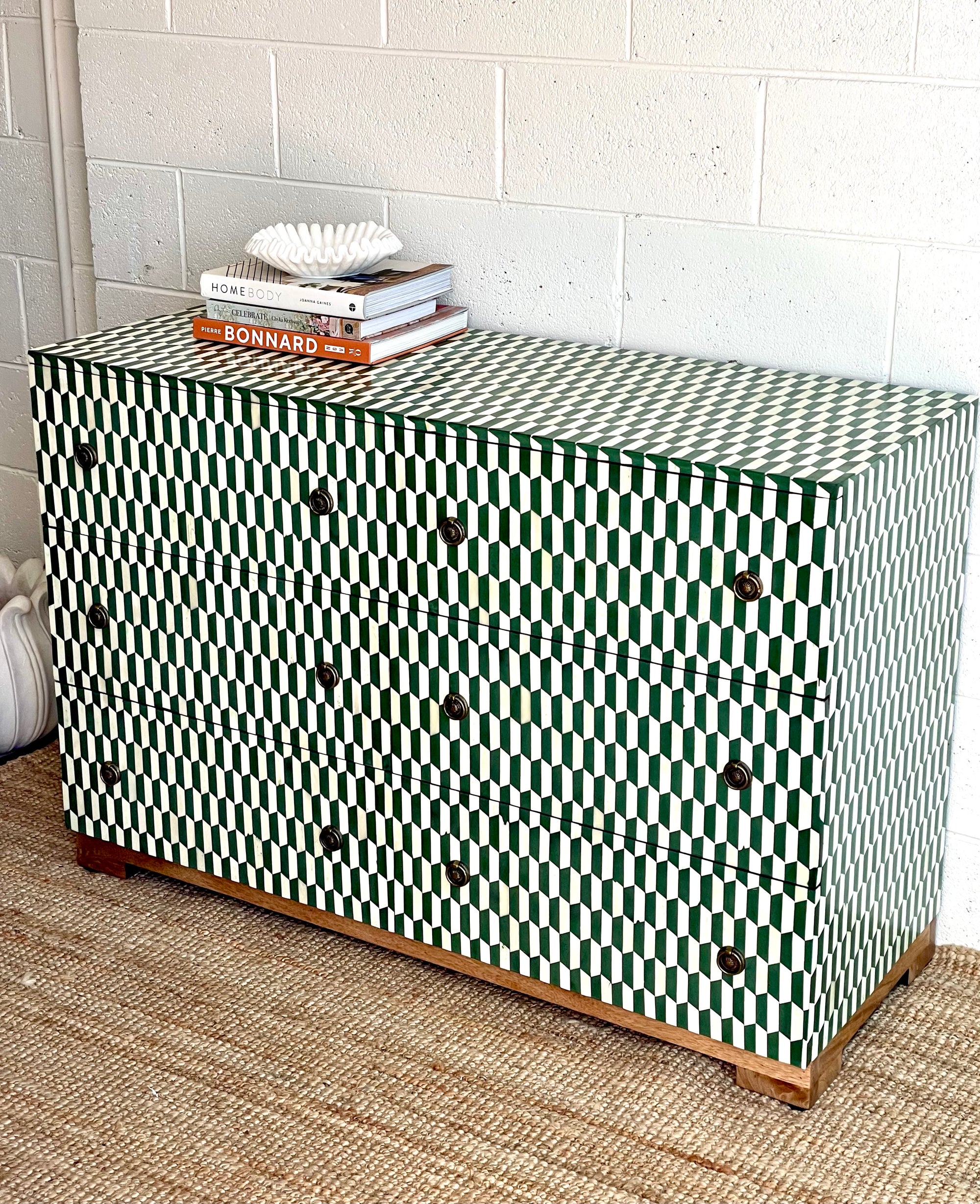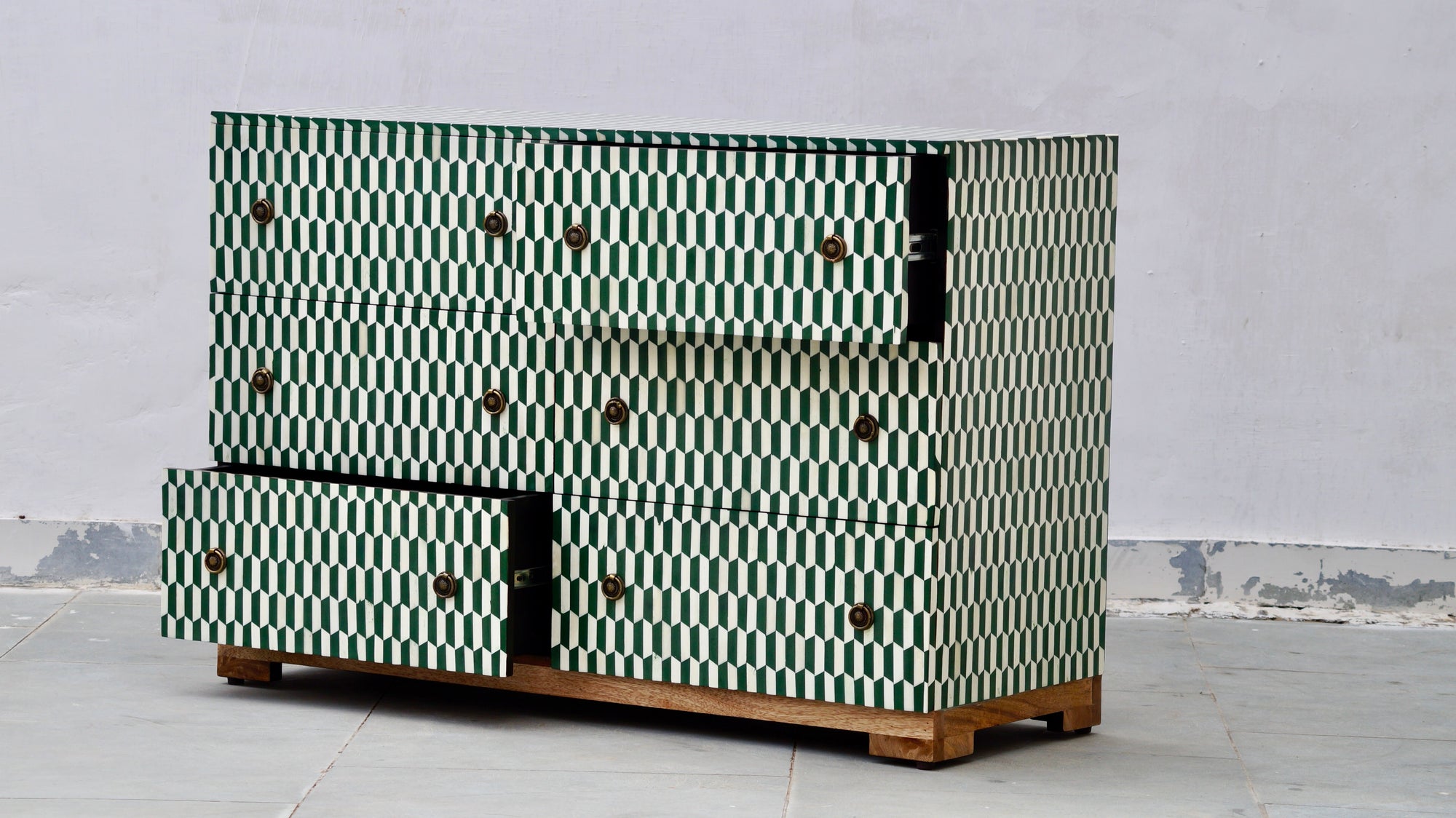 Bone Inlay 6 Drawers Chest - Green Lattice